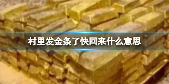 村里发金条了快回来,相关的说法还有村内开银趴了快回来,意思就是以村里发金条的名义来吸引人们回来,这个梗火起来是因为近期社交软件上发言会显示IP的改动。