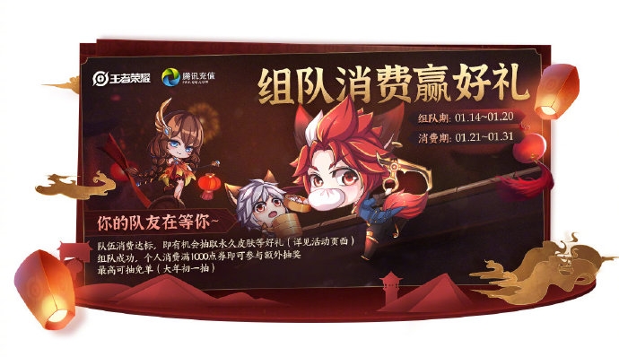 遭遇因链接问题临时下线后,王者荣耀春节组队消费活动已于1月16日下午重新上线,有打算在春节期间氪金买皮肤的小伙伴快快组队吧,有机会抽花木兰水晶猎龙者等多款皮肤皮肤。