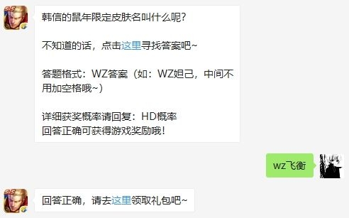王者荣耀1月15日每日一题:韩信的鼠年限定皮肤名叫什么呢?