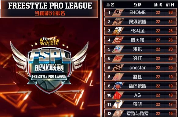 《街头篮球》FSPL职业联赛常规赛在历经8周的苦战后,终于落下了帷幕。EHOME战队获得了冠军,一起来了解一下总决赛共有哪些队伍晋级。