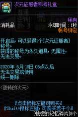 DNF游戏中最近有很多玩家在找次元征服者称号的获得方法以及外观效果,那么下面小编就跟大家介绍一下这个称号的详细信息吧。 开启后,可以获得1个[次元征服者]称号。 获得的称号为永久道具,无属性,无法交易。 获取方式: <逆转的次元