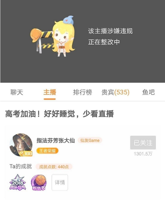 很久以前张大仙传出一个不好的消息,引起了很多网友们的关注,直播间突然被违规关闭,被誉为斗鱼王者荣耀板块一哥的张大仙,直播缺惨遭封号。