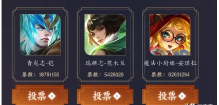 软件提交 专题合集 热门手游哈喽大家好,我是伟哥。今天是投票活动的最后一天了,从早上的票数来看,基本已经确定这次返场的皮肤了,下面我马可看看截止早上8点50的票数。首先来看第一和第三的票数,都是在六千多万票,不过安琪拉的小厨娘领先诸葛亮武陵仙君将近400多万票,可以说