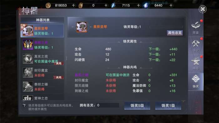 软件提交 专题合集 热门手游新神魔大陆中神器可以通过铸灵来提升我们的属性,那么游戏中的神器怎么铸灵呢?下面小编就给大家带来了新神魔大陆神器铸灵攻略,一起来看看吧。 神器铸灵攻略 左侧是装备列表,可以上下滑动。列表显示神器图标、名称、当前装备的显示装备,已经激活的神