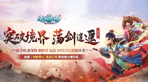 《逍遥情缘》10月25日正式开启两大资料片新服——“剑胆琴心”和“勇冠三军”,超多豪华礼包等你来拿!