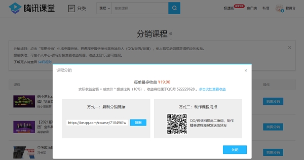 腾讯课堂软件中用户可以通过课程分销功能赚取一定的费用,许多用户不知道该软件中如何进行分销课程,接下来小编就给大家分享一下,还不知道的用户一起来看下。