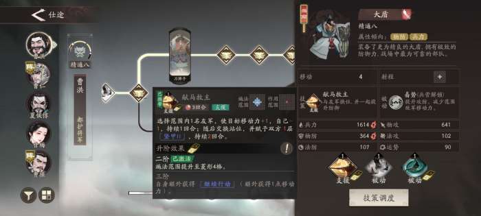 曹洪等到兵营系统开启后由于骑兵的收益太大,大部分情况下以肉盾的作用出场,所以副将方面推荐戏志才和曹纯。