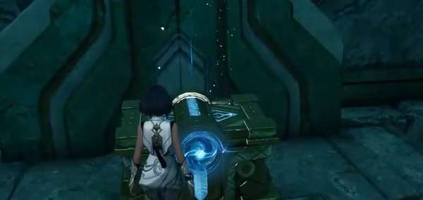 完成任务之后继续往里走,路过的渡石都打开,顺楼梯往上。两层的小怪同时解决,就能激活机关,继续往前激活下一个。两边机关打完可以开一个宝箱,拿不拿随意。往里走,把机关逆方向转到对应位置,旁边的经验宝箱记得打。打开墙上的机关,进门之后直接往前冲,激光不用管,直接过。