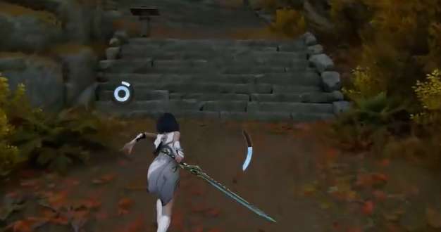 再上一层稍微麻烦一点,需要来回跑两次,分别把钥匙和石头带上去,然后两个都压住踏板,再打对面的机关。之后带着钥匙继续往上,遇到小怪直接捅死就行。这里有个机器人,身上有任务铸节,记得拾取,不然后面任务会卡住。