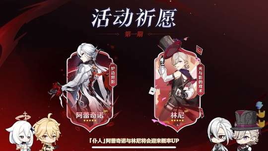 双角色卡池机制:同期开放阿蕾奇诺/林尼的角色祈愿,共用四星/五星保底。