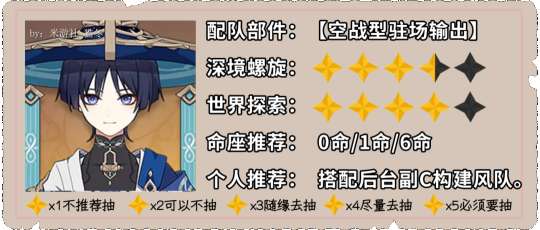 tip:如果你很缺带队驻场输出角色,流浪者是一个非常不错的选择。