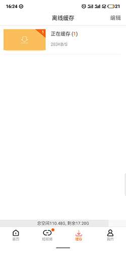 2、进入离线缓存页面,你可以看到正在缓存或者缓存完成的视频。