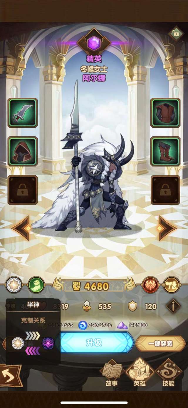 英雄进阶:然后游戏里的英雄除了普通都是可以进阶的,但根据初始品质最终上限也不同,初始为稀有的最高进阶到史诗,初始为精英的最高进阶到神话。