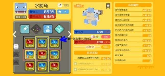 我们以如图所示的水箭龟为例,第一条宾果属性不需要附魔属性结晶,如黑框框起的三块方石,已经触发。