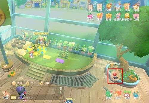 此时可以自动来到这个泡泡龙小游戏的机器这里,然后可以点击屏幕右边的这个摇杆按钮,即可开启小游戏。