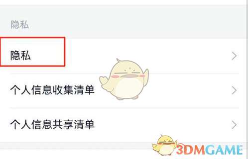 3、点击【隐私】,详见下图所示;