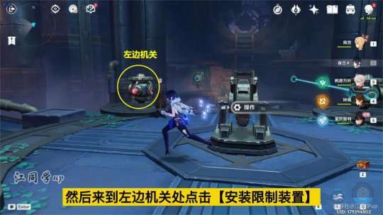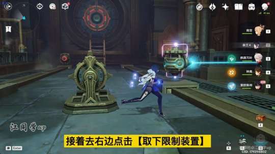 (6)第2处解密,先来到下图机关这里点击【取下限制装置】