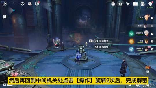 (12)第4处解密,先来到中间机关处点击【操作】旋转2次后,退出操作