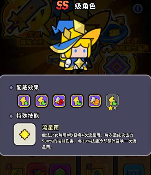 技能: 每8秒召唤4波流星雨,每波造成500%攻击伤害。技能冷却属性每达到30%,就能额外召唤一次。
