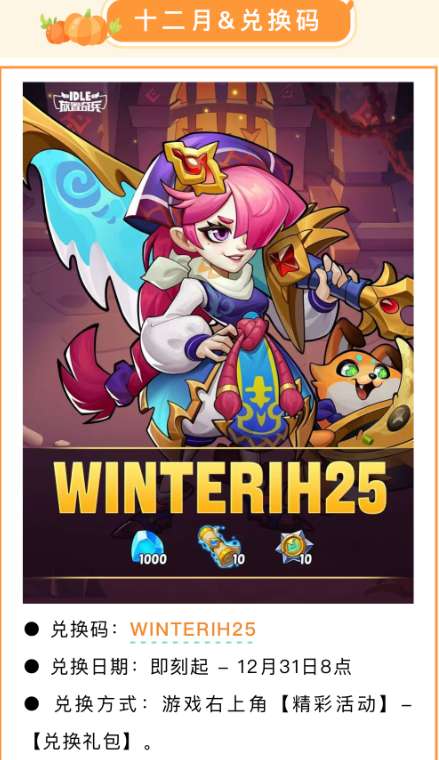 软件提交 专题合集 热门手游《放置奇兵》2025年12月礼包码已更新:WINTERIH25。内含丰富资源助力冒险,有效期至12月31日8点。请在游戏内【精彩活动】中及时兑换!切勿错过这一波超值福利!