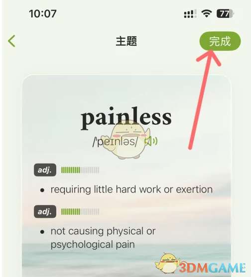 4、如下,在背景页面中,选择更改的单词背景,点击右上角的【完成】即可。