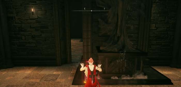 到了幽影城后门赐福后角色不用进幽影城里面,就在赐福点旁边或者稍微往东边一点点的地方找找,一般都会看到一个比较显眼的雕像立在那里。角色需要走到雕像面前打开菜单选择使用肢体动作母亲啊,动作做完后雕像旁边就会轰隆隆地移开,露出一条隐藏的通道入口。