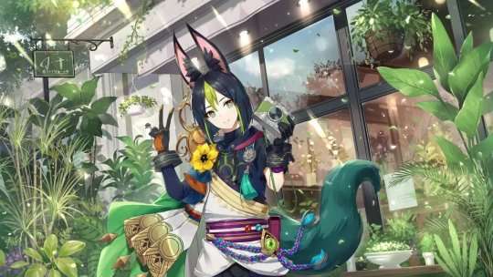 提纳里作为环保大师,分享世界的一天自然也少不了他。看身后的毕竟有点像花店,又有一种温室展览馆的感觉,拿起相机,拍个美美的照片,下次记得把柯莱也叫上。