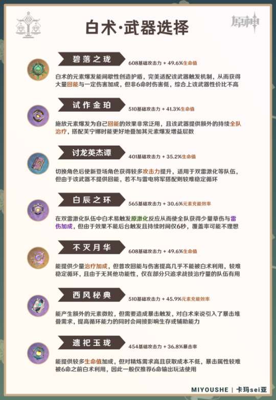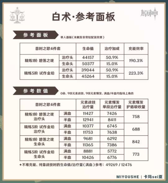这里将分别介绍白术的武器与圣遗物配装方案及典型参考面板。