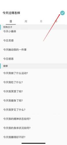2、进入日记编辑界面,点击上方的日记问题;