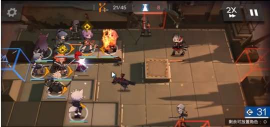 建议在前锋的前一个位置放置一个档三盾,并等待cost值满了之后,在右侧持续放置弓箭手。同时建议在杰西卡旁边放置一个医疗单位。在芙蓉加入阵容后,建议将她的方向调整为往下奶,这样可以医治到大部分的队友。