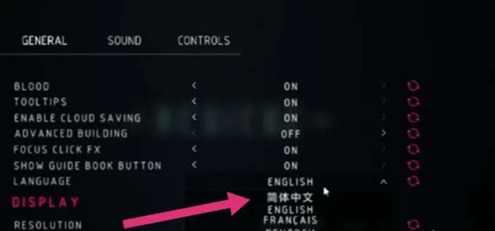 在确定好之后就会马上生效,在返回之后,玩家就会发现languag尾节后面就已经变成了简体中文。同时整个设置界面的其他选项也会直接显示中文,大家可以看到有控制,有声效,有分辨率等等。到了这里大家操作就会变得比较简单,也完成了这一次的中文设置。退出设置的页面,重新回到主界面,所有的内容全部都是中文,从此之后就不需要担心语言障碍的问题,不会影响到游戏的体验。需要注意的是,每一个不同的版本,在设置界面上可能会有一些差异性,但整体的逻辑是一样的。