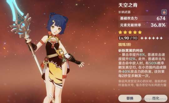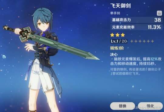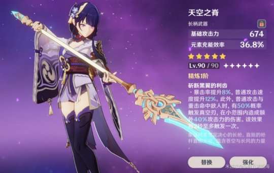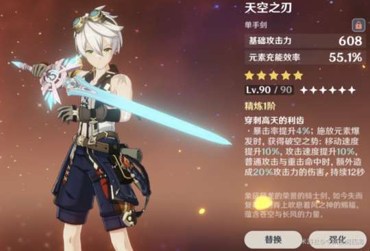 推荐理由:天空之刃有着不错的基础攻击力(白值),副词条还是充能效率可以说是很符合班尼特,可作为班尼特的毕业武器。