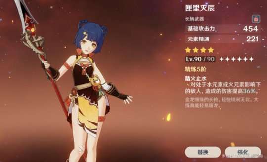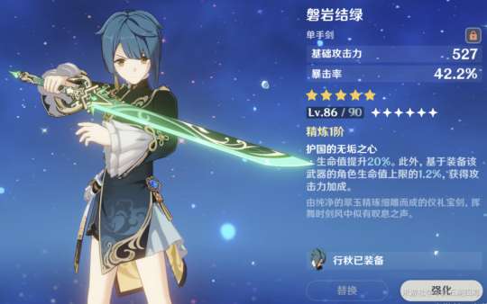 推荐理由:这把武器适合香菱作为副C使用,因为它提供元素精通和基础攻击力,有助于在国家队打出元素反应伤害。副词条也是吃到了一个36%的伤害提升(精5)。