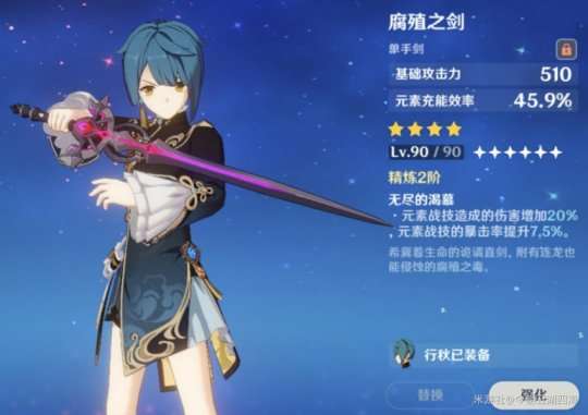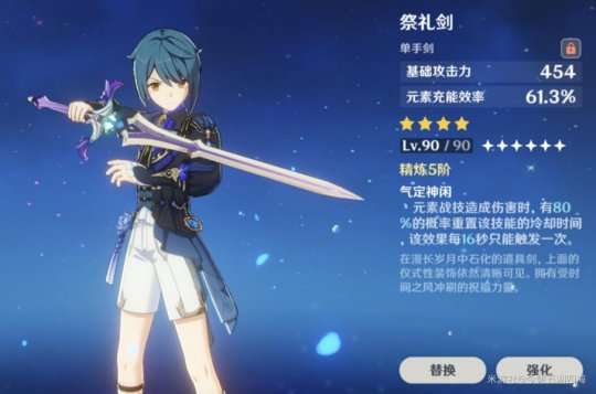 推荐理由:提供攻击力加成和元素充能效率,同时拥有较高的基础攻击力白值。