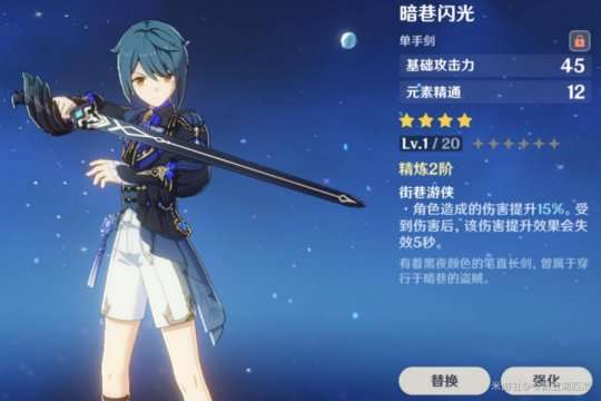 推荐理由:单手剑通用五星武器,解放圣遗物暴击率压力堆叠暴击伤害,无论在副c还是辅助位置都强烈推荐。