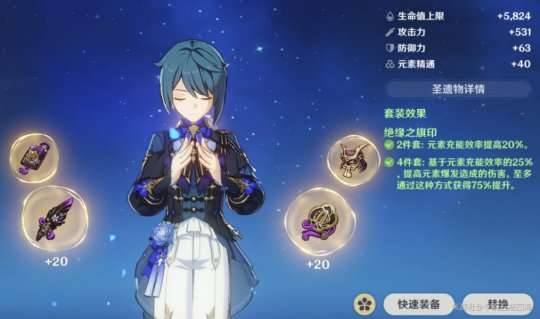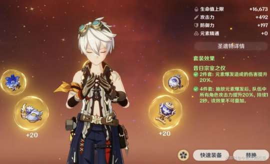 推荐理由:副词条和武器特效提供了不错的元素充能效率,让元素爆发循环流畅,减小了圣遗物对元素充能的压力。