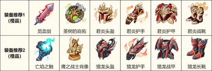 输出向:攻击4件套(猎龙套装)+亡焰之触+鹰之战士肖像