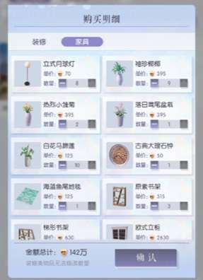8、如果栗子不够或者家具没有可以选择在购买明细中选择减少家具