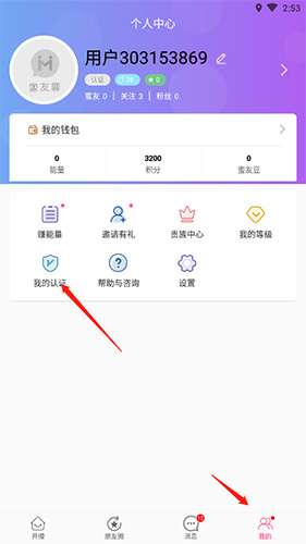 1、打开蜜友聊软件,点击底端的“我的”选项,然后点击“我的认证”选项。