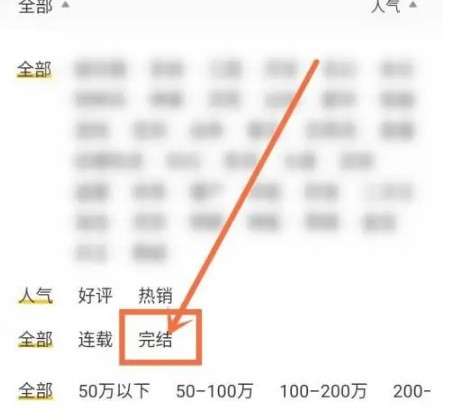 进入到全部类别页面,选择“完结”选项,即可查看完结的小说。