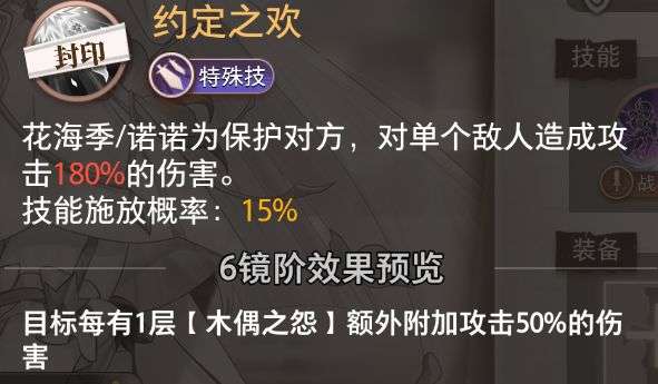 六星后强化,敌方每有一层“木偶之怨”,便多造成攻击50%的伤害。