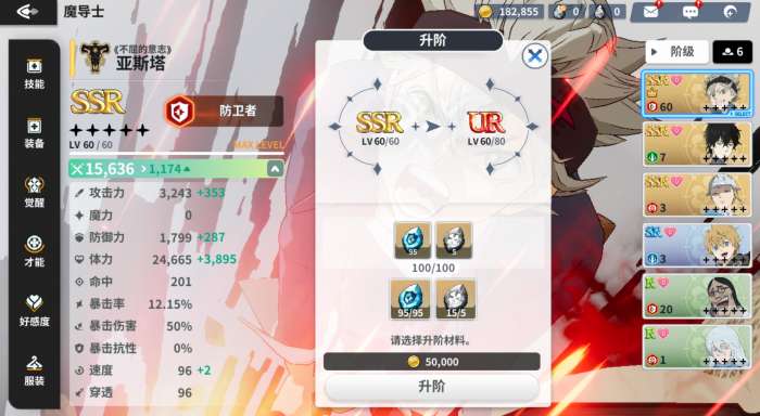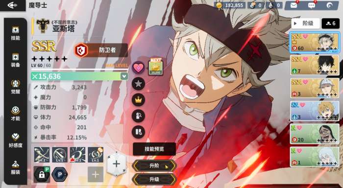 软件提交 专题合集 热门手游《黑色四叶草魔法帝之道》角色升阶方法来了,当等级提升至当前上限后,点击「升阶」按钮,即可进入升阶页面。通过手动点击想要使用的升阶道具进行「手动升阶」,同时可以在左侧的能力值一览中查看提升的数值。