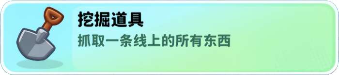 使用后,你的矿钩会化身勇往无前的挖地铲,沿着一条直线前进,将整条线上的所有物品统统收入囊中!