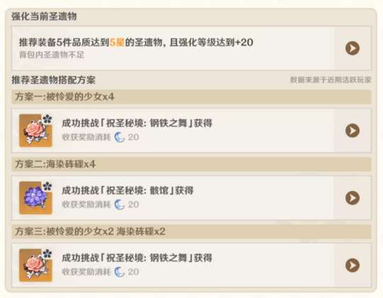 圣遗物推荐会有几套不同的圣遗物方案,玩家可以根据自己的情况任意选择一套。