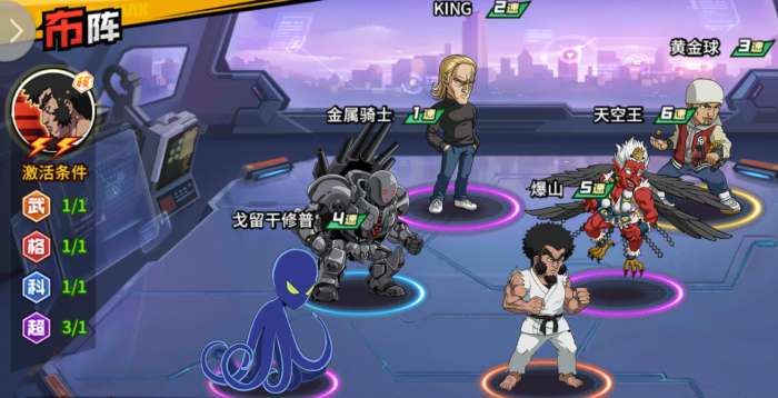 金属骑士1速压血线的同时为全员增攻。King2速出手时拥有5点能量,在天空王的加成下可使自身额外伤害最大化。