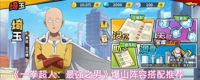 以上就是pk游戏网小编整理带来的一拳超人最强之男爆山阵容怎么搭配,爆山阵容搭配推荐,更多相关游戏攻略,请关注pk游戏网!