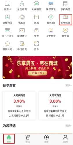 1、在首页页面中点击本地优惠按钮,