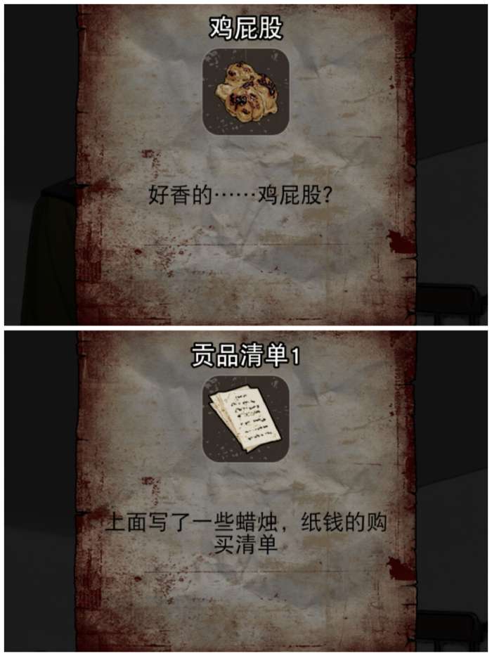 自己回到房间,程贤送来一张贡品清单1,跟他对话: