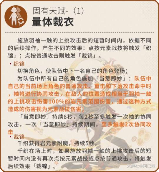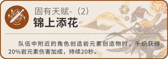 进一步提高角色伤害,协同攻击效果造成的伤害倍率与元素战技一致,视作元素战机伤害。岩附魔效果不同于娜维娅,可以被覆盖。
