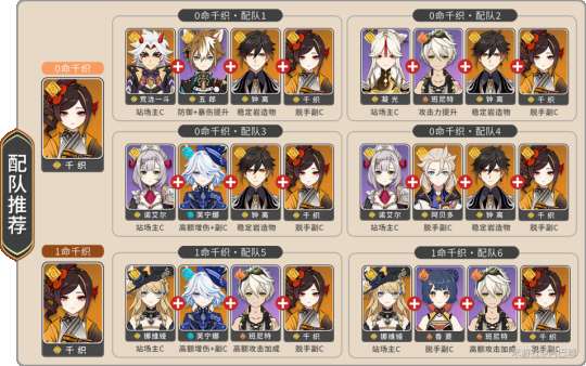 综上所述,0命千织与1命千织机制上存在差距,因此两者的配队阿巴辣分开推荐,具体如下: